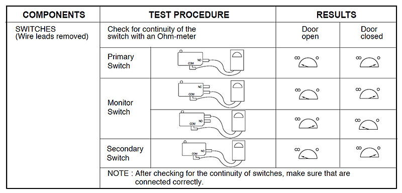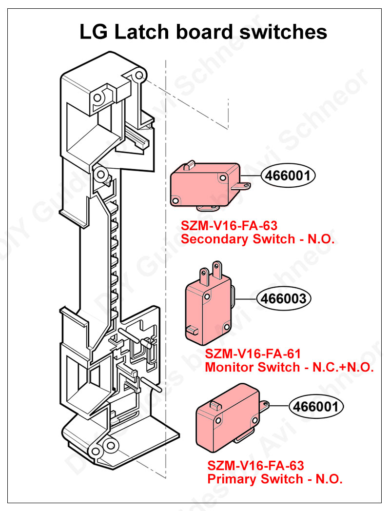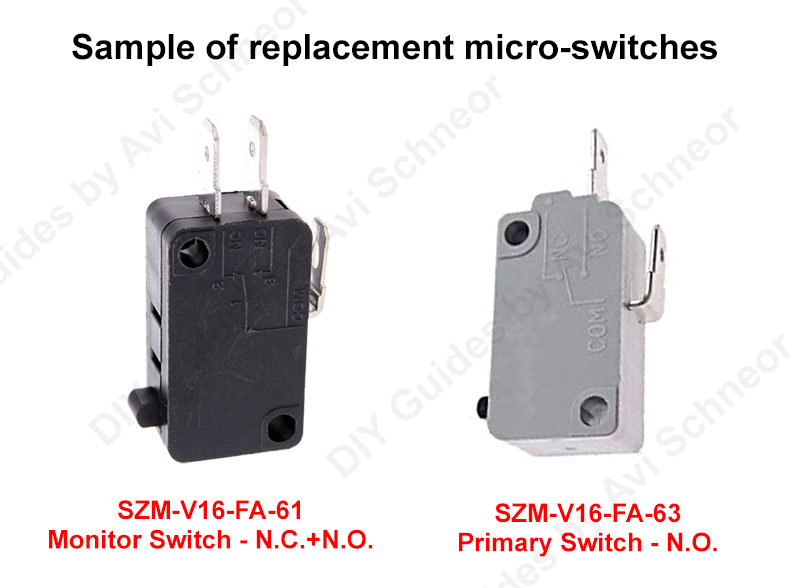 Note: The micro-switch/s part number might be different in your oven. Check the parts you disassemble and consult with the oven’s service manual.